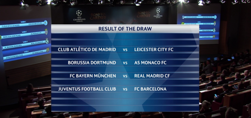 Τιτανομαχίες στα προημιτελικά του Champions League! Μπάγερν-Ρεάλ και Γιουβέντους-Μπαρτσελόνα ανέδειξε η κλήρωση των «8». Ατλέτικο-Λέστερ και Ντόρτμουντ-Μονακό τα άλλα ζευγάρια.