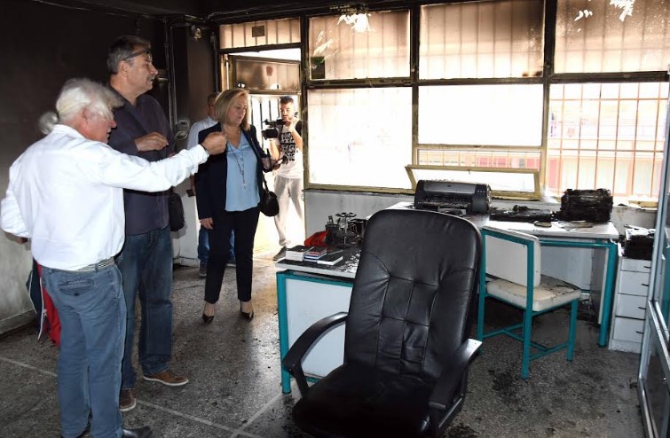 Ο Αντιδήμαρχος Παιδείας και Αθλητισμού, Τάκης Πετρόπουλος, η πρόεδρος της Σχολικής Επιτροπής Δευτεροβάθμιας Εκπαίδευσης, Φωτεινή Συριώτη–Κυπραίου και ο Πρόεδρος του Ανατολικού Διαμερίσματος, Δημήτρης Αναγνωστόπουλος, νωρίς το πρωί, μόλις ενημερώθηκαν για τον βανδαλισμό από αγνώστους του Σχολικού Συγκροτήματος στην περιοχή Μαρούδα και την πρόκληση πυρκαγιάς, μετέβησαν στο σημείο.