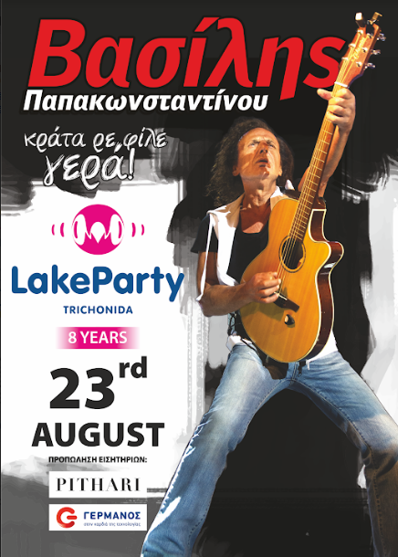 Βασίλης Παπακωνσταντίνου. Ένας σπουδαίος καλλιτέχνης που κουβαλά την κληρονομιά των αμέτρητων συνεργασίών του με σπουδαίους συνθέτες και ποιητές έρχεται στη σκηνή του Lake Party περπατώντας με τη φωνή του σε γνώριμα μονοπάτια που όλοι αγαπήσαμε. Ο ακούραστος, ρομαντικός, αγαπημένος μας αιώνιος έφηβος είναι έτοιμος για άλλο ένα ταξίδι επί σκηνής!