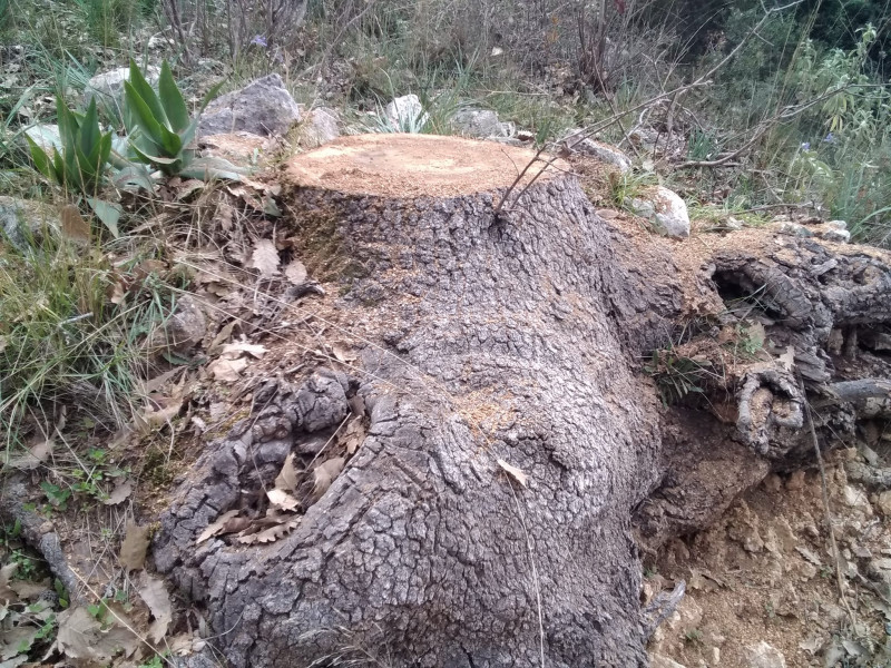 Ασφαλώς και πρόκειται για την μεγαλύτερη κακοποίηση δάσους. Ασφαλώς και πρόκειται για το μεγαλύτερο έγκλημα. Όλα τα δένδρα είναι κομμένα και κακοποιημένα κατά μήκους του αγροτικού δρόμου.