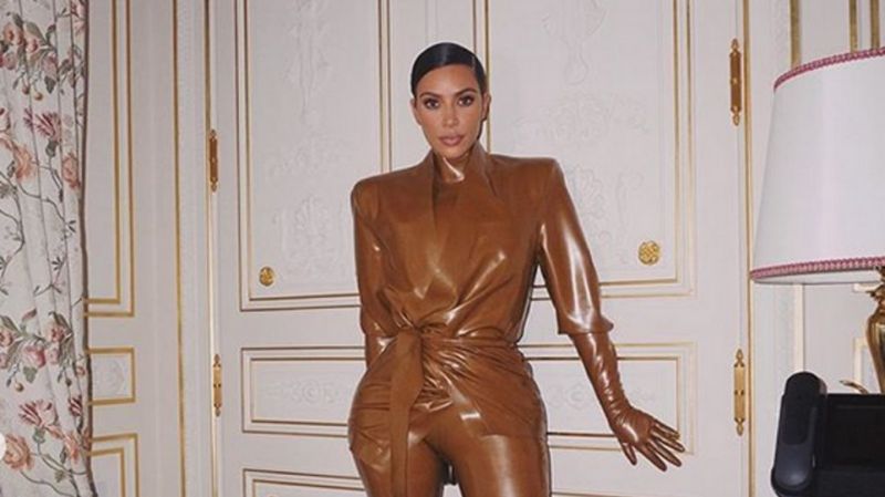 Βίντεο με την Kim Kardashian να προσπαθεί να φορέσει ένα latex κορμάκι