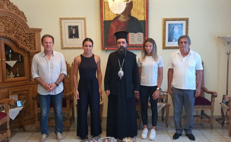 Οι δύο Πρωταθλήτριες, συνοδευόμενες ἀπό τόν Γενικό Γραμματέα κ. Δημήτριο Φωτιάδη καί τόν ἔφορο κωπηλασίας στόν Ν.Ο.Κ κ. Νικόλαο Παρασκευόπουλο ἐπισκέφθηκαν τόν Σεβασμιώτατο στό γραφεῖο του, ὅπου συζήτησαν ἐπί μακρόν διάφορα θέματα, μεταξύ τῶν ὁποίων τόν τρόπο πού μπορεῖ ἡ Ἱερά Μητρόπολη νά συμπαρασταθεῖ στόν καλό ἀγώνα τῶν ἀθλητῶν τοῦ Ὁμίλου.