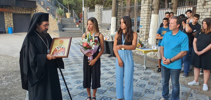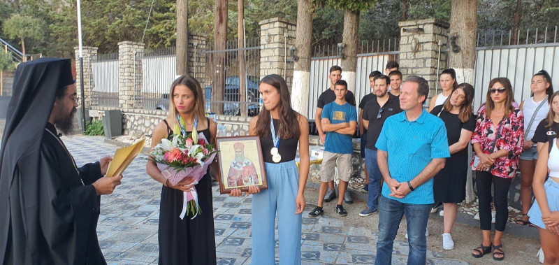 Ὁ Σεβασμιώτατος συνεχάρη τίς δύο Πρωταθλήτριες καί ὅλους τούς ἀθλητές καί τούς παράγοντες καί προσέφερε στόν Ὅμιλο μιά εἰκόνα τοῦ ἁγίου Νεκταρίου Πενταπόλεως, ὁ ὁποῖος εἶναι προστάτης τῶν Γυμναστῶν, ἀναφέροντας καί τήν ἄποψή του γιά τούς γυμναστικούς συλλόγους.