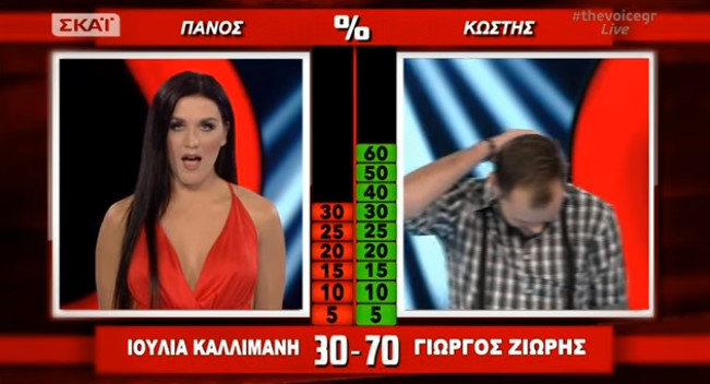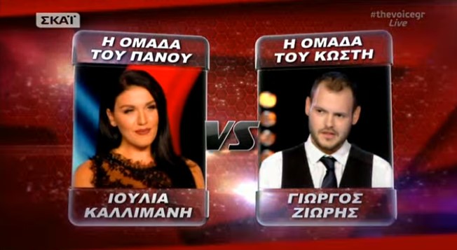 Μία ξεχωριστή μονομαχία ζήσαμε πριν από λίγο στο πρώτο φετινό live επεισόδιο των Cross Battlies του The Voice με τον Κωστή Μαραβέγια να καλεί σε μονομαχία τον Πάνο Μουζουράκη και πιο συγκεκριμένα ο Γιώργος Ζιώρης από την Άρτα βρέθηκε αντιμέτωπος με την Ιουλία Καλλιμάνη από τη Κωνωπίνα Ξηρομέρου.
