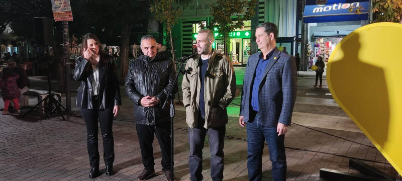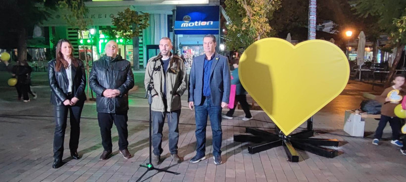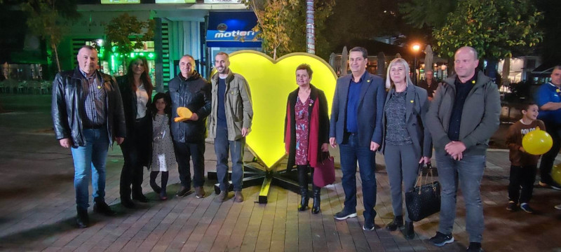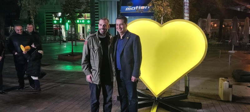 - Ένα στολίδι που διαφέρει από τα άλλα, μια μεγάλη κίτρινη καρδιά, τοποθετήθηκε από το πρωί στην κεντρική πλατεία του Αγρινίου.