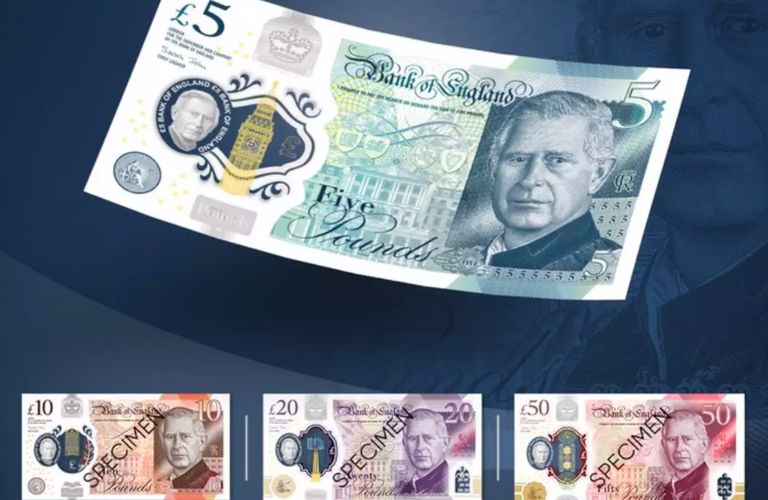 Το πορτρέτο του νέου μονάρχη της Βρετανίας θα αλλάξει τα υπάρχοντα σχέδια των 5, 10, 20 και 50 λιρών. Ο Βασιλιάς Κάρολος εμφανίζεται στο μπροστινό μέρος των χαρτονομισμάτων και στο υδατογράφημα ασφαλείας.