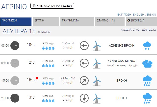 Βροχές στο Αγρίνιο – Έως 15 βαθμούς η θερμοκρασία