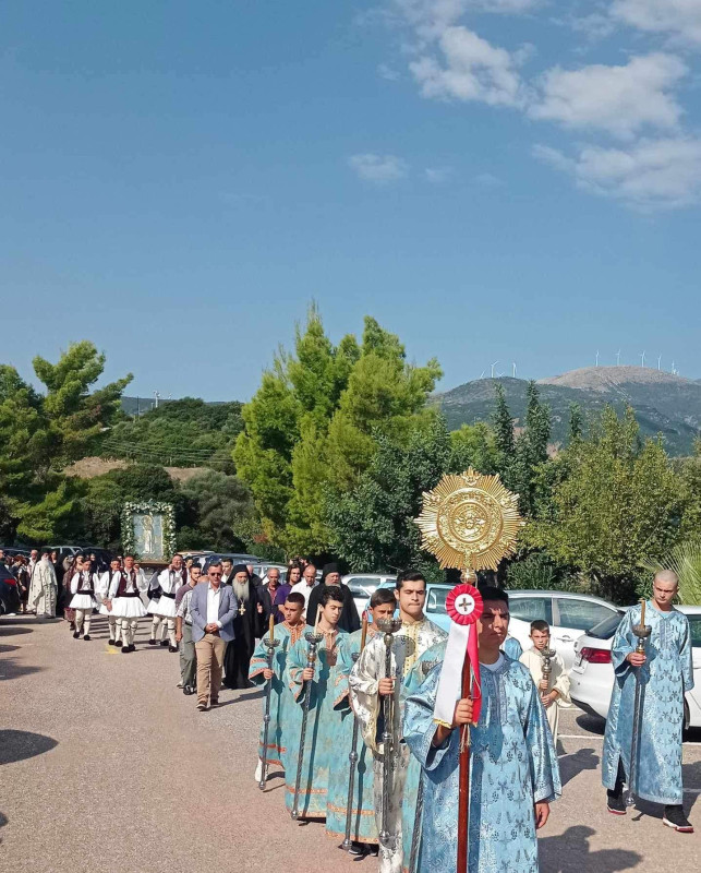 Με βυζαντινή μεγαλοπρέπεια τιμήθηκε η Ιερά Εικόνα της Παναγίας της Ναυπακτιώτισσας την Κυριακή, 1 Οκτωβρίου, από τη Μοναστική αδελφότητα στην Ιερά Μονή Μεταμορφώσεως του Σωτήρος στη Ναύπακτο.