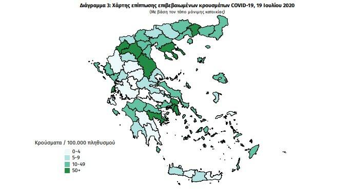 O «χάρτης» των κρουσμάτων κορωνοϊού στην Ελλάδα – Πού εντοπίζονται τα περισσότερα