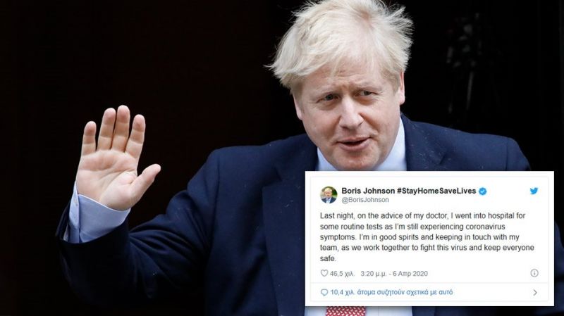 Τα συμπτώματα του Μπόρις Τζόνσον επιδεινώθηκαν από «ήπια» σε «επίμονα» – «Είμαι σε καλή διάθεση», το μήνυμα του Βρετανού πρωθυπουργού από το Νοσοκομείο.
