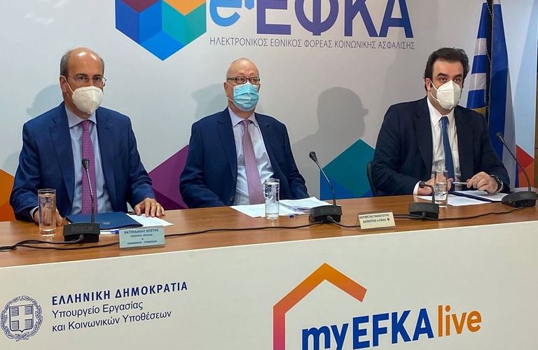 Την νέα ψηφιακή υπηρεσία myEFKAlive παρουσίασαν σήμερα ο υπουργός Εργασίας και Κοινωνικών Υποθέσεων, Κωστής Χατζηδάκης και ο υπουργός Επικρατείας και Ψηφιακής Διακυβέρνησης, Κυριάκος Πιερρακάκης, μαζί με τη Διοίκηση του ΕΦΚΑ.