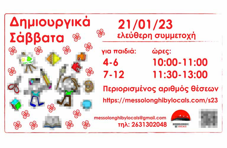 Ξεκινούν τα Δημιουργικά Σάββατα στο Messolonghi by Locals, μια σειρά από καλλιτεχνικά εργαστήρια και δημιουργικές δραστηριότητες για παιδιά.
