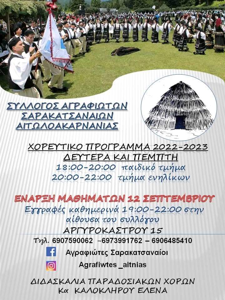 Ξεκινούν τη Δευτέρα 12 Σεπτεμβρίου τα Χορευτικά Τμήματα του Συλλόγου Σαρακατσαναίων Αιτωλοακαρνανίας