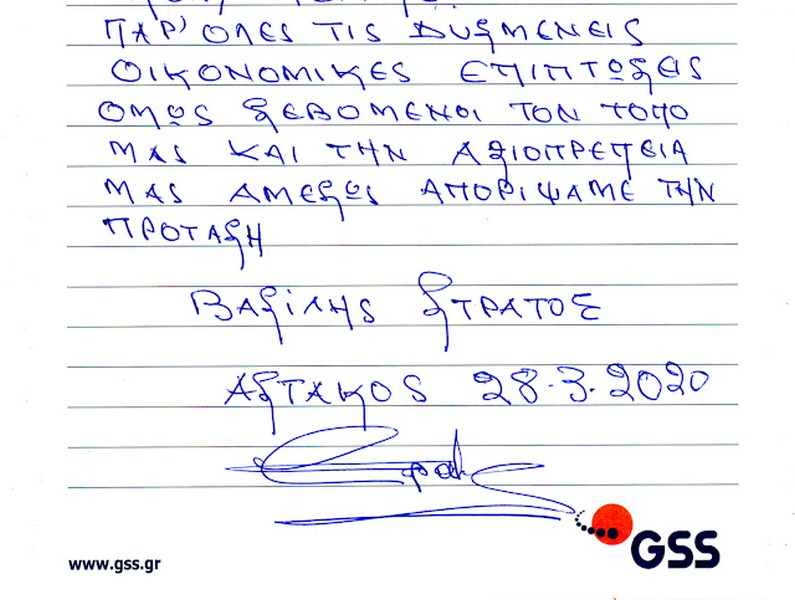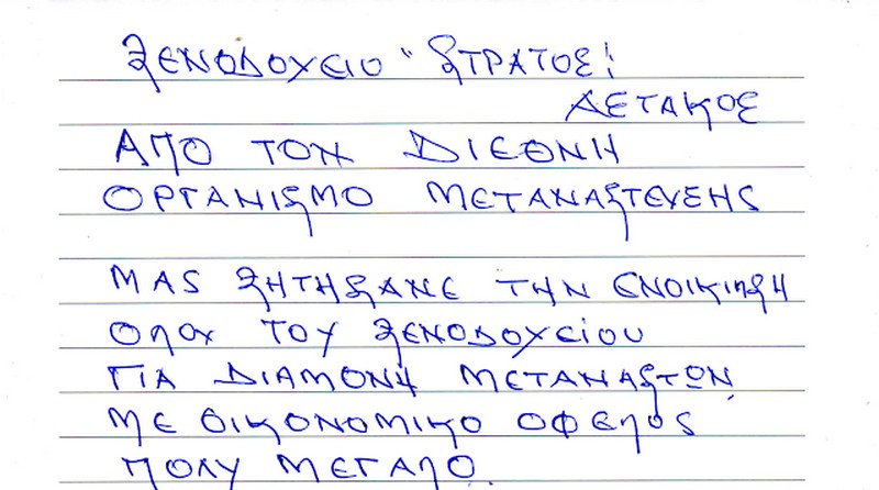 Το Ξενοδοχείο Στράτος στον Αστακό, με ανακοίνωση του, παρά την συμφέρουσα οικονομική πρόταση που του έγινε, εκφράζει τη ρητή και απαρέγκλιτα κατηγορηματική αντίθεσή του σε κάθε ενδεχόμενο να φιλοξενήσει πρόσφυγες και μετανάστες στην περιοχή μας.