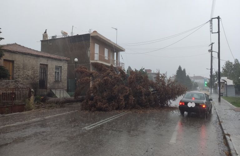 Ξεριζώθηκε δέντρο στη Νέα Αβόρανη και έπεσε στο οδόστρωμα (Photo)