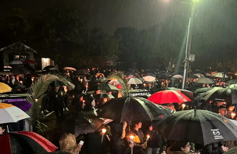 Μέσα στη βροχή έψαλλαν το «Χριστός Ανέστη» χιλιάδες Έλληνες στη Μελβούρνη, το βράδυ του Μεγάλου Σαββάτου.