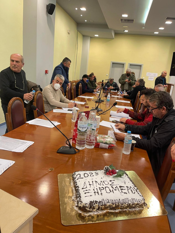 «Στην έναρξη της συνεδρίασης του Δημοτικού Συμβουλίου που έγινε την Τρίτη, 24 Ιανουαρίου, κόψαμε όλοι μαζί οι παρόντες Δημοτικοί και Τοπικοί Σύμβουλοι, μαζί με τους παριστάμενους Δημότες, την Πρωτοχρονιάτικη Πίτα του Δήμου Ξηρομέρου.