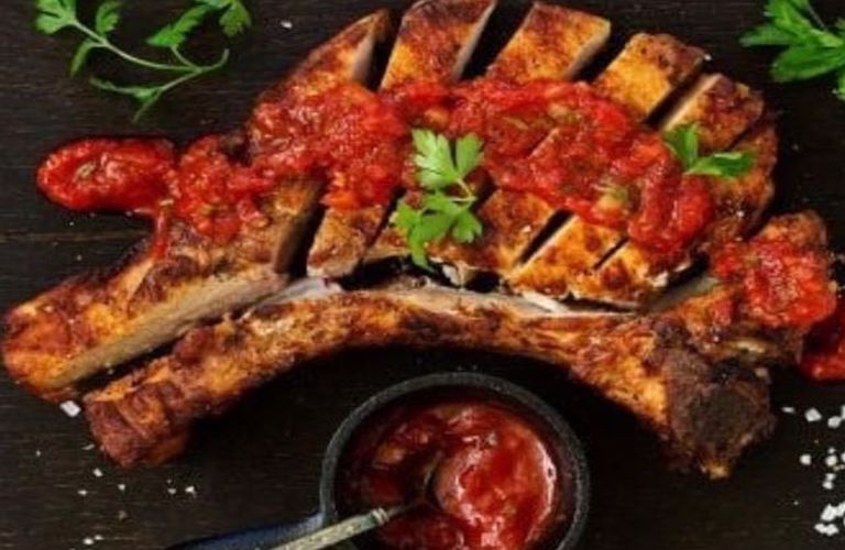 Χοιρινές μπριζόλες με σάλτσα κόκκινης πιπεριάς