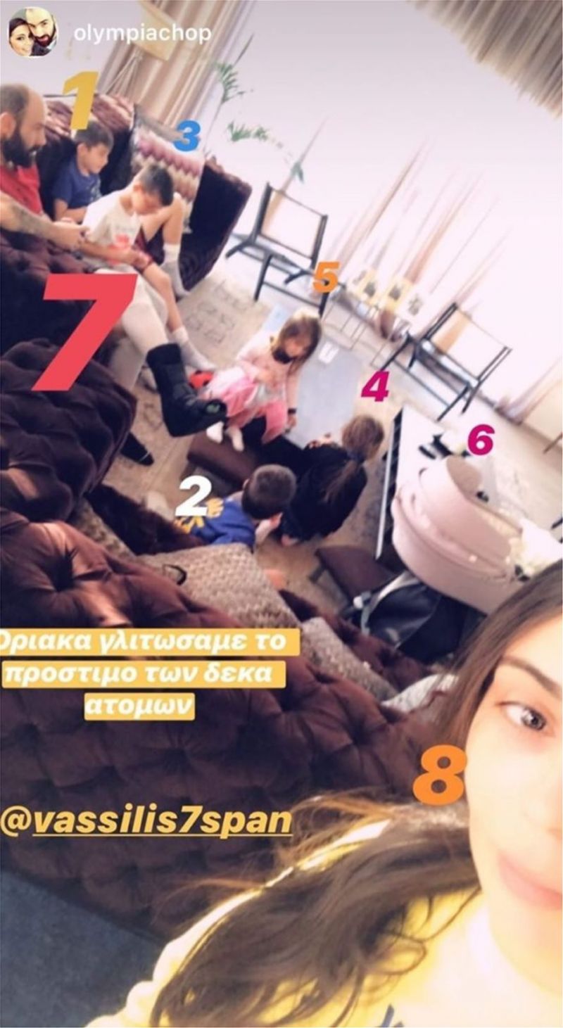 Ανεβάζοντας, λοιπόν, μια οικογενειακή φωτογραφία στο Instagram, η Ολυμπία αποκάλυψε πως στο σαλόνι του σπιτιού κάθονται 8 άτομα και ο σύζυγός της οριακά γλίτωσε το πρόστιμο που επιβάλλεται σε συγκεντρώσεις άνω των 10 ατόμων!