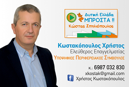 Εδώ λοιπόν ο συνδυασμός «ΔΥΤΙΚΗ ΕΛΛΑΔΑ – ΜΠΡΟΣΤΑ» με επικεφαλής τον Κώστα Σπηλιόπουλο αναλαμβάνει τις ευθύνες του ώστε να υπάρξουν απτά και συγκεκριμένα αποτελέσματα σε αυτόν τον τόσο νευραλγικό τομέα της οικονομικής προοπτικής της περιοχής μας.