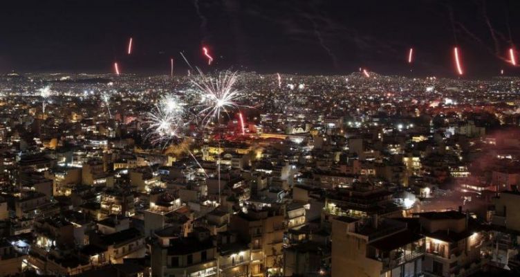 Τα μεσάνυχτα ο ουρανός της Αττικής έλαμψε από δεκάδες πυροτεχνήματα, ενώ οι καμπάνες των εκκλησιών χτυπούσαν χαρμόσυνα.