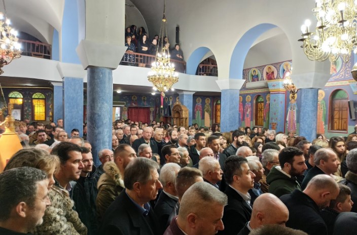 Το εσωτερικό του Ιερού Ναού αποδείχθηκε μικρό για να χωρέσει το μέγα πλήθος των πιστών, που οι περισσότεροι από αυτούς προσήλθαν πριν ακόμα την έναρξη της Θείας Λειτουργίας («τρίτη καμπάνα», όπως καθιερώθηκε να λέγεται).
