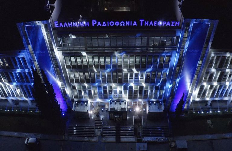 Στα χρώματα της γαλανόλευκης το Ραδιομέγαρο της Ε.Ρ.Τ. (Photos)