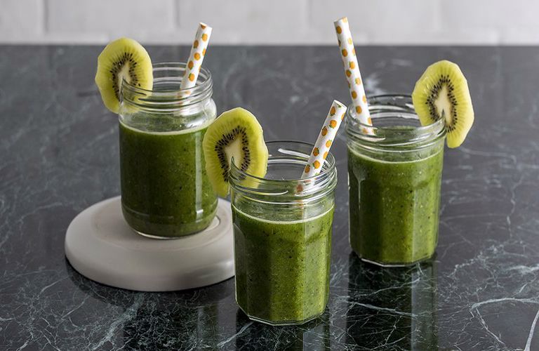 Σερβίρουμε με πάγο και 1 φέτα ακτινίδιο σε κάθε ποτήρι.