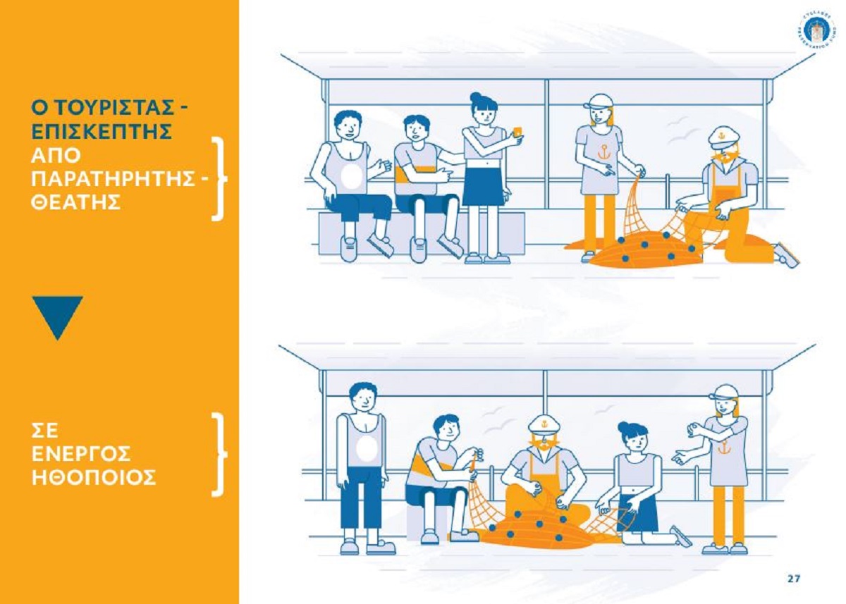 Διαθέσιμος είναι πλέον ο πρώτος οδηγός για τον υπεύθυνο αλιευτικό τουρισμό, μια από τις σύγχρονες πρακτικές βιώσιμης αλιείας, που συνδράμει στην προστασία και αποκατάσταση του θαλάσσιου οικοσυστήματος, εξασφαλίζει πρόσθετο εισόδημα στους αλιείς, συνεισφέρει στη διατήρηση του επαγγέλματός τους, ενώ δημιουργεί και νέες θέσεις εργασίας. Ο οδηγός, που δημιουργήθηκε από το Cyclades Preservation Fund (CPF), απευθύνεται κυρίως σε αλιείς και παρουσιάζει πρακτικές κατευθύνσεις και οδηγίες για το πώς ο αλιευτικός τουρισμός μπορεί να γίνεται με υπεύθυνο και βιώσιμο τρόπο, αποτυπώνοντας θετικές εμπειρίες και προκλήσεις.