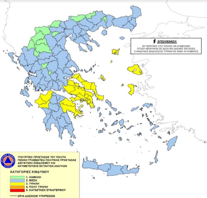 Σύμφωνα με πρόβλεψη της Γενικής Γραμματείας Πολιτικής Προστασίας οι Περιφερειακές Ενότητες Αχαΐας και Ηλείας, την Πέμπτη 4 Ιουλίου 2019, θα βρίσκονται στην κατηγορία κινδύνου 3 (υψηλή), όπως φαίνεται στον επισυναπτόμενο ημερήσιο Χάρτη Πρόβλεψης Κινδύνου Πυρκαγιάς.
