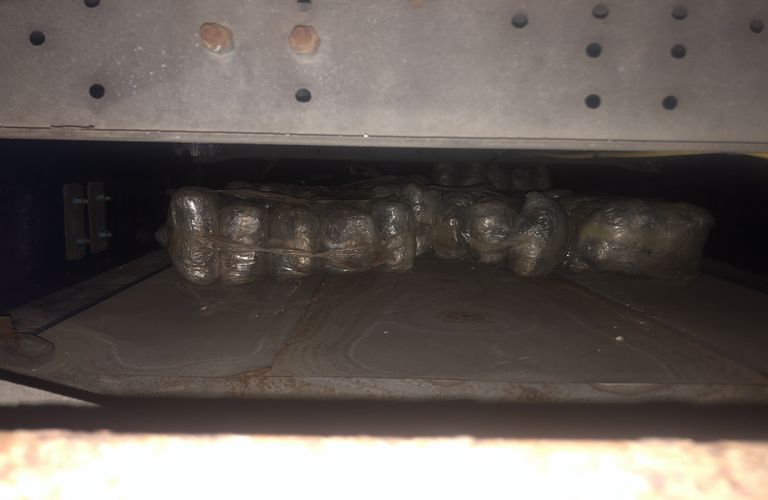 Σε έρευνα που ακολούθησε στο φορτηγό του άνδρα, οι αστυνομικοί του Τμήματος Δίωξης Ναρκωτικών Πατρών, με τη συνδρομή του Κεντρικού Λιμεναρχείου Πατρών, βρήκαν και κατέσχεσαν επιμελώς κρυμμένες σε ειδική κρύπτη του αμαξώματος, (48) συσκευασίες που περιείχαν (50) κιλά κάνναβης, ενώ στο εσωτερικό του οχήματος, βρέθηκαν επίσης (350) ευρώ και τρία κινητά τηλέφωνα.