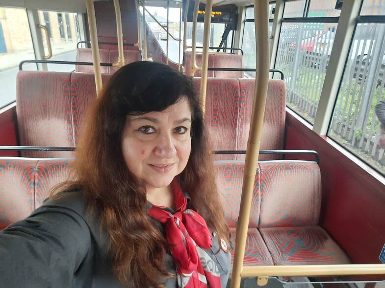 Αρχικά ήταν κάπως τρομακτικό. Από τότε που έβγαλα το δίπλωμα δεν είχα οδηγήσει ξανά λεωφορείο, μόνο βανάκι. Επιπλέον οδηγούσα ένα λεωφορείο που ήταν διπλάσιο στο μέγεθος, στο ύψος. Απορούσα αν μία γυναίκα μπορούσε να ελέγξει ένα τέτοιο λεωφορείο. Είναι όμως σαν να οδηγείς αυτοκίνητο, απλά πρέπει να είσαι πιο προσεκτικός. Προσέχουμε να μην γεμίσει το λεωφορείο ενώ απαγορεύεται να στέκεται κάποιος όρθιος μέσα σε αυτό. Αν φυσάει, τα πράγματα δυσκολεύουν.