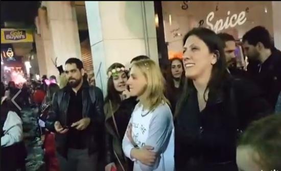 Η κυρία Κωνσταντοπούλου παρακολούθησε όλη τη νυχτερινή ποδαράτη παρέλαση ανάμεσα στο πλήθος αποφεύγοντας να κάτσει στην εξέδρα . Όταν αντελήφθησαν την παρουσία της οι πολίτες έσπευσαν να της μιλήσουν ενώ πολλοί ήταν αυτοί που έβγαλαν selfies μαζί της.